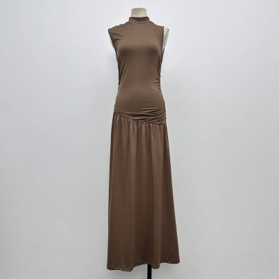 Mock Neck Sleeveless Ruched Long Dress