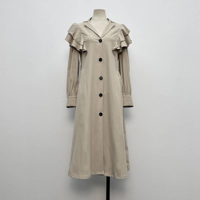 Elegant Suit Collar Ruffle Long-sleeve Dress Commute Long Shirt Dress