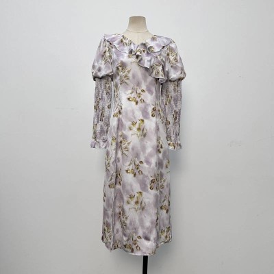 French Tie-dye Floral Ruffle Long Sleeve Chiffon Maxi Dress