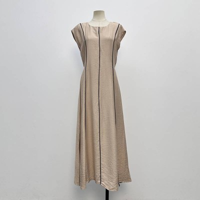 Contrast Stitch Sleeveless Long Dress Simple Temperament Slim Commuter Long Dress