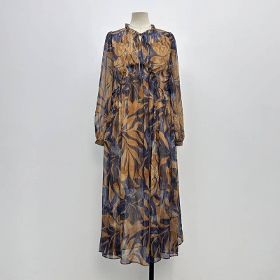 Vintage Print Chiffon Long Sleeve Maxi Dress