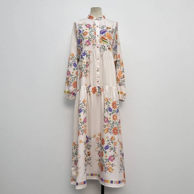 Stand Collar Floral Long Sleeve Long Shirt Dress Loose Casual Printed Dress