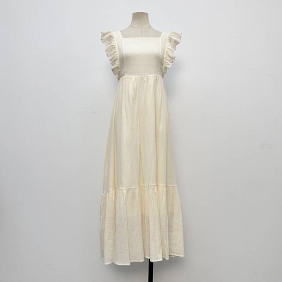 Off-white Square Neck Ruffled Sleeve Loose Maxi Dress