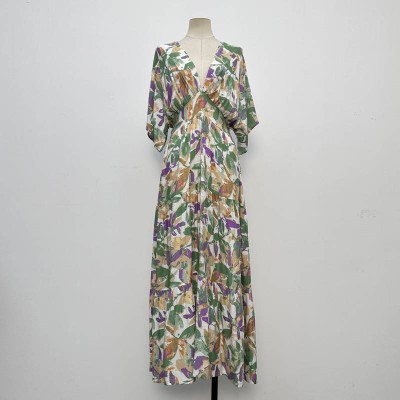 Vintage Floral Print V-neck Short Sleeve Maxi Dress
