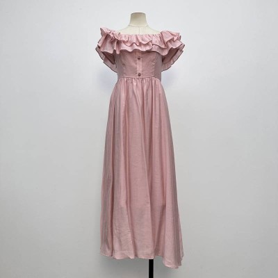 Pink Ruffled Off-Shoulder Waist-Tight Slim Long Dress