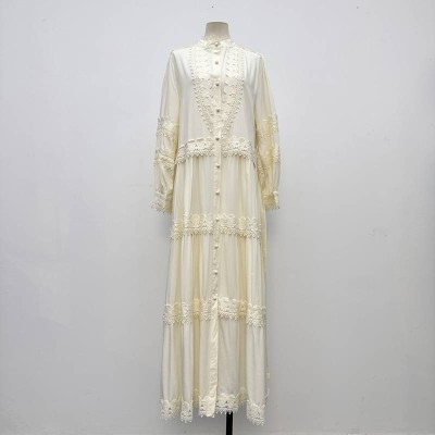 Elegant Lace Patchwork Stand Collar Long Sleeve Maxi Dress