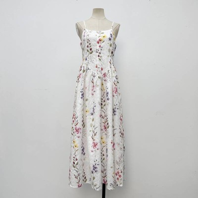 French Floral Hollow Embroidered Spaghetti Strap Maxi Dress Vacation Style Elegant Long Dress