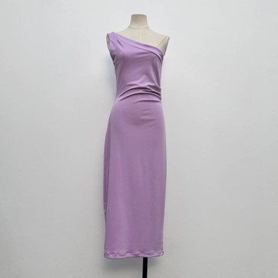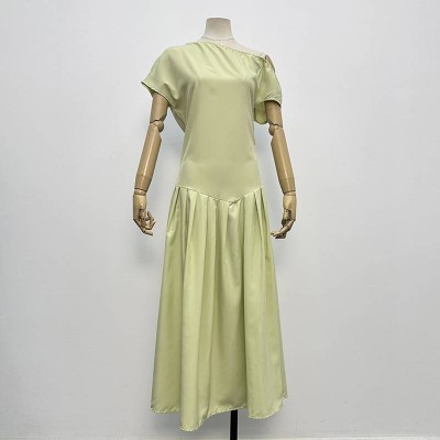 Fashion One-Shoulder Ruched Green Midi Dress Elegant Off-Shoulder Slim Fit Dress
