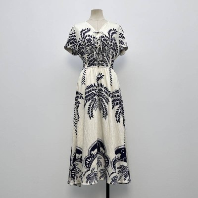 Vintage Plant Print Tie Waist Midi Dress