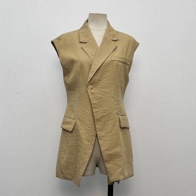 Khaki Textured Sleeveless Waist-Cinching Blazer Vest