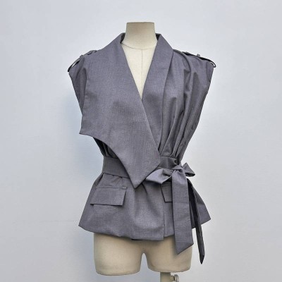 Gray Sleeveless Waist-tie Blazer Vest Temperament Commuter Slim-fit Top