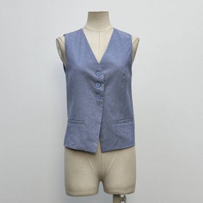 Retro V-neck Gray Short Suit Vest Commuter Sleeveless Waistcoat Top