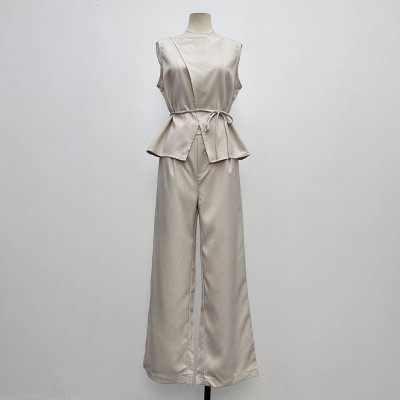 Premium Satin Sleeveless Waist-cinching Top & Wide-leg Pants Two-piece Set Commute Slim Outfit