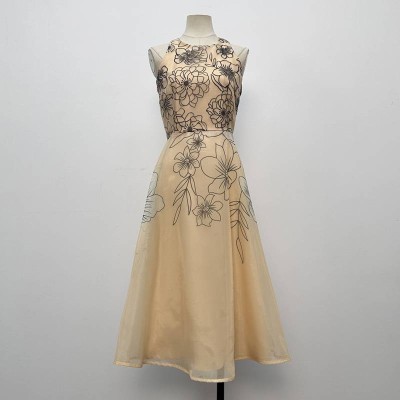 Halter Neck Printed See-Through Midi Dress Elegant Sleeveless Chiffon Dress