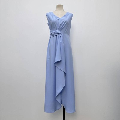 Light Blue V-neck Sleeveless Waist-cinched Midi Dress Elegant Temperament Commute Dress