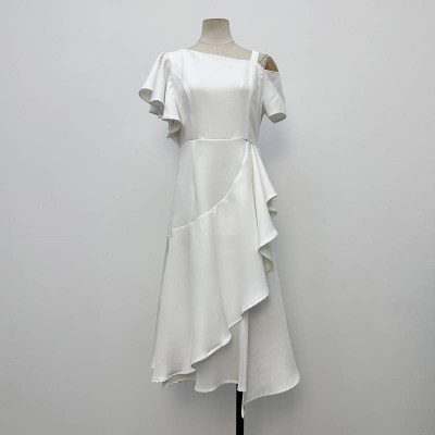 Elegant White Off-the-Shoulder Ruffle Midi Dress, Temperament Banquet Gown