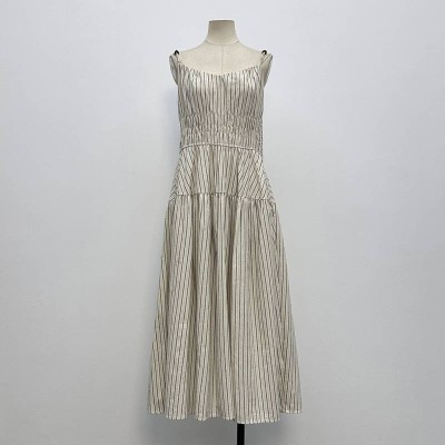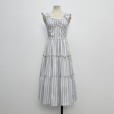 French Striped Ruffled Sling Midi Dress Waist Slimming Temperament Dress