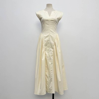 Off-white V-neck Sleeveless Waist Cinched Slim Midi Dress