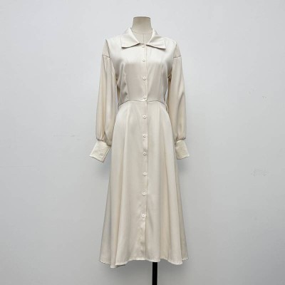 Elegant Lapel Satin Shirt-style Midi Dress