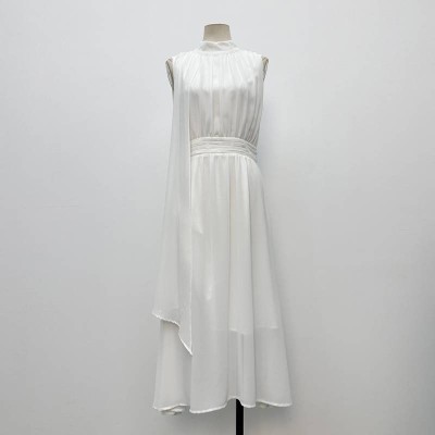 Stand Collar Sleeveless Waist Cinch Chiffon Midi Dress