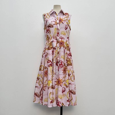 Nautical Print Collar Sleeveless Midi Shirt Dress