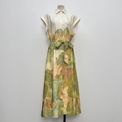 Artistic Tie-dye Lapel Waist Shirt Dress Elegant Commuter Midi Dress