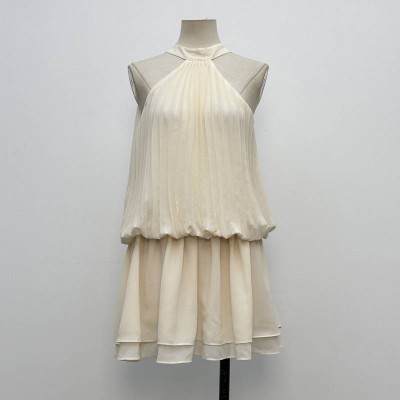 Cream Halter Sleeveless Chiffon Waist Short Dress