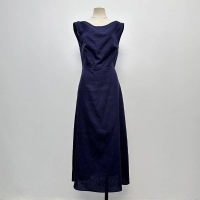 Navy Blue Sleeveless Waist-cinched Midi Dress