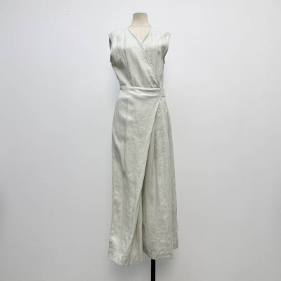 Simple V-neck Sleeveless Waist-cinching Linen Jumpsuit