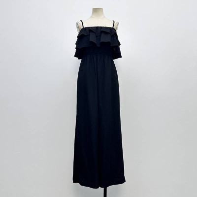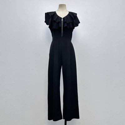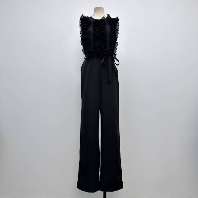 Black Ruffle Sleeveless High Waist Wide-leg Jumpsuit Elegant Commute One-piece Pants