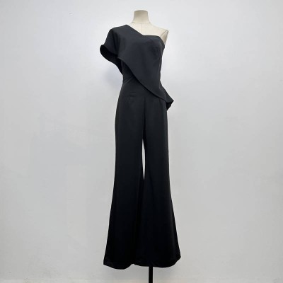 Elegant One-Shoulder Wide-Leg Jumpsuit High-Waist Slim Fit Commute Jumpsuit