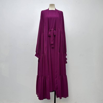 Elegant Purple Tie-waist Two-piece Maxi Dress Set with Outerwear and Inner Dress
