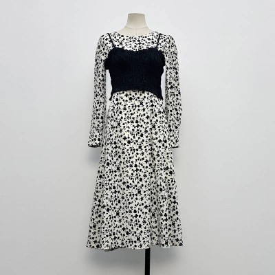 Vintage Tie-up Vest + Long Sleeve Dress Set French Gentle Style Two-Piece Outfit