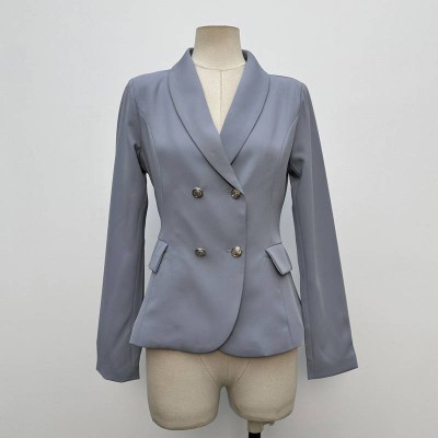 Elegant Gray Waist-Designed Double-Breasted Blazer