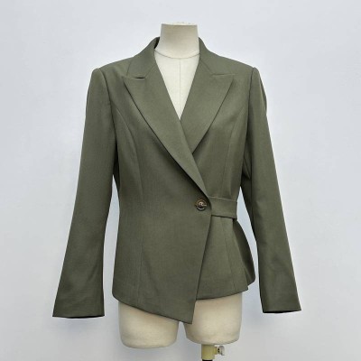 Elegant Waist-tailored Blazer, High-end Olive Green Commuter Suit Jacket