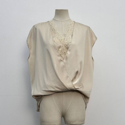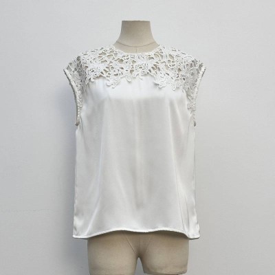 White Lace Sleeveless Satin Elegant Top