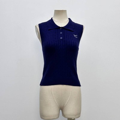 Navy Blue Lapel Cable Knit Sleeveless Vest
