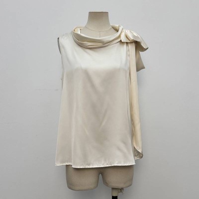 Elegant Satin Ribbon Sleeveless Top Temperament Milk White Commuter Inner & Outer Wear Top