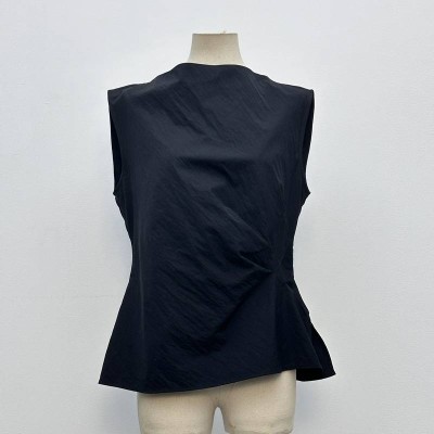Niche Design Pleated Sleeveless Top Temperament Slim Round Neck Black Sleeveless Shirt