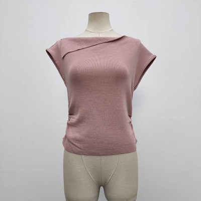 Elegant Pink Asymmetrical Neck Sleeveless Knit Top Slim Fit Cropped Blouse