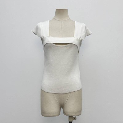 French Style Fake Two-piece Square Neck Sleeveless Knitted Top