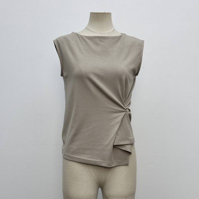 Fashion Gray Off-Shoulder Sleeveless Top Simple Irregular Neck Design Versatile Blouse For Inner Or Outer Wear