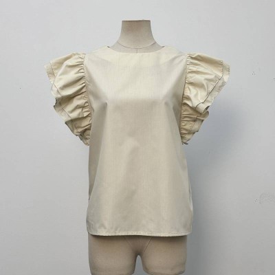 Elegant Stand Collar Ruffled Sleeveless Shirt Vintage Brown Unique Design Top