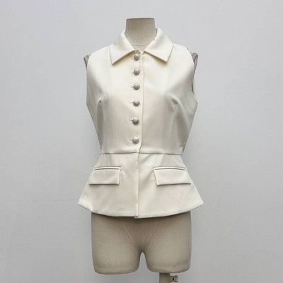 Elegant Lapel Sleeveless Waist-Top Minimalist Single-Breasted Commute Vest-Style Top