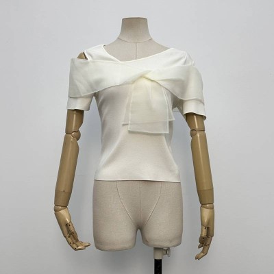 Elegant White Off-the-Shoulder Ruffled Knit Top Niche Design Short Sleeve Base Shirt