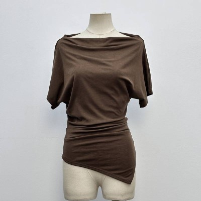 Designer Off-Shoulder Pleated Short-Sleeve T-Shirt for Women, Niche Irregular Split Top