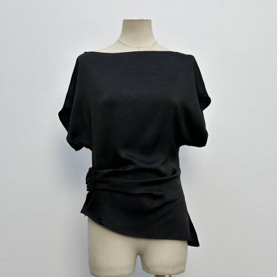 Black Asymmetrical Off-Shoulder Short Sleeve Waist-Top