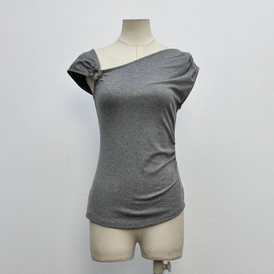 Gray Oblique Shoulder Off-Shoulder Slim Sleeveless Top