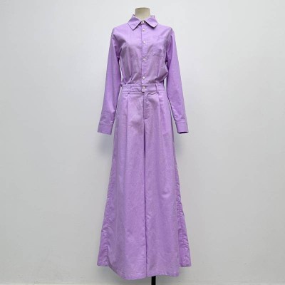 Elegant Light Purple Lapel Long Sleeve Shirt + High Waist Wide-leg Pants Set