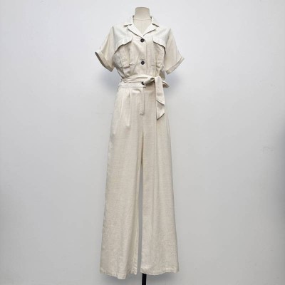 Elegant Lapel Short Sleeve Tie-Waist Wide-Leg Jumpsuit